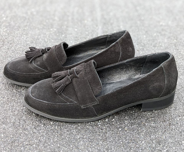 Туфлі лофери з натуральної шкіри та замші. З китицями.