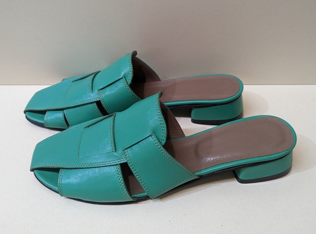 STTOPA Розміри 36-45. Шльопанці великих розмірів шкіряні. Каблук 3 см. 361-3645-3-1 Бірюзові