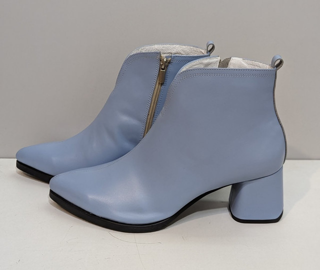 Напівчоботи з натуральної шкіри та замші. З внутрішнього боку застібка-блискавка. Каблук 6,5 см.